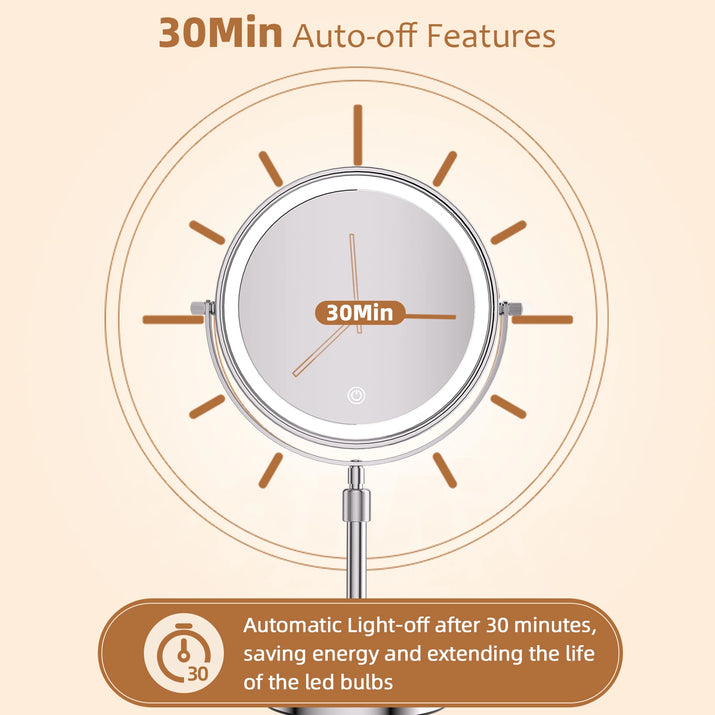 8 Inch Makeup Mirror With Light Lamp 10X Magnification 3 Color Lights,Adjustable Brightness Height Standing Cosmetic Mirror